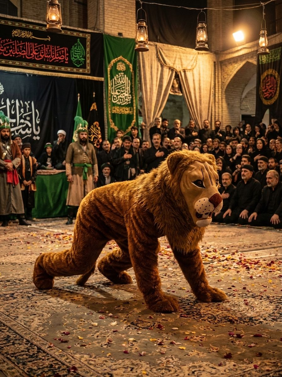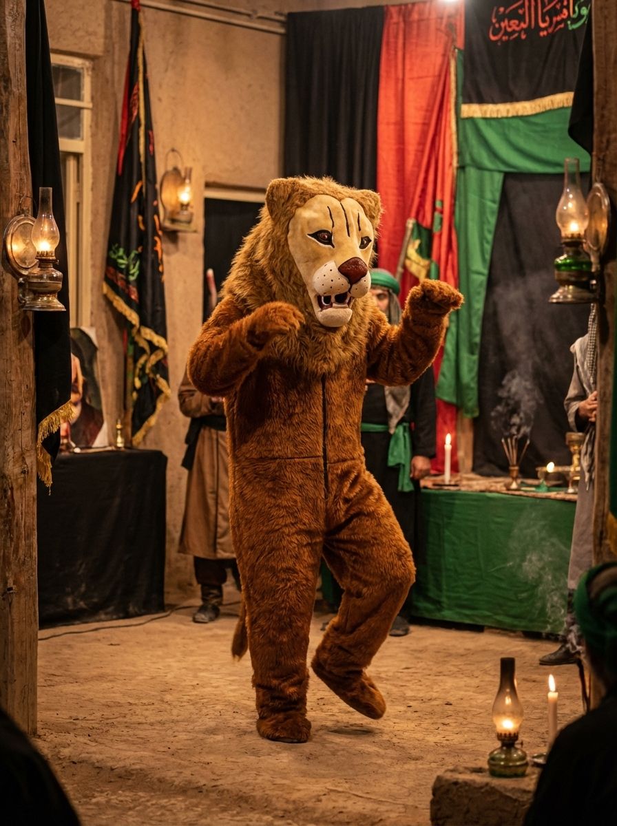 دخل الأسد التعزية إلى مراسم حداد محرم للإيرانيين من عصر القاجار وأصبح أحد طقوس الحداد المهمة لدينا لزيادة الإثارة في المشهد. في الوقت الحاضر، يلعب الشخص دور الأسد في التعزية، ومن خلال ارتداء زي الأسد وسكب التراب على رأسه في التعزية، يزيد من حداد الحفل. لطلب هذا المنتج، قم بوضعه في سلة التسوق الخاصة بك وسيتم إرساله إليك بعد إتمام الخطوات.